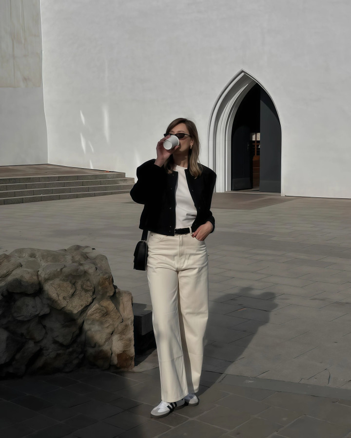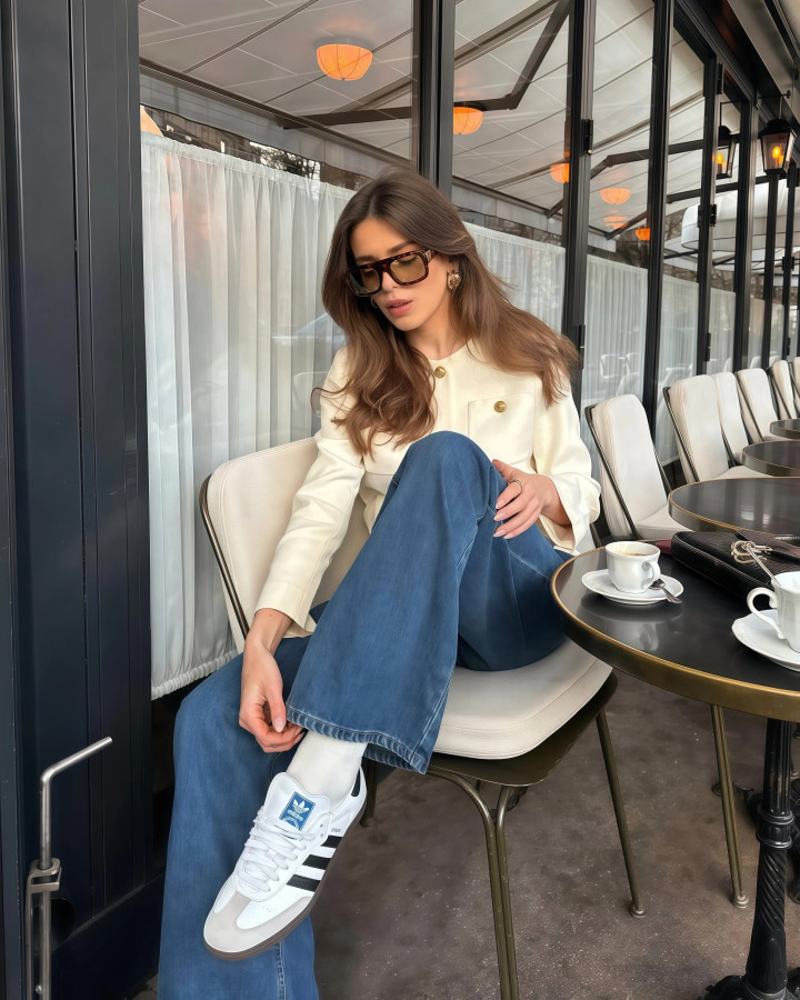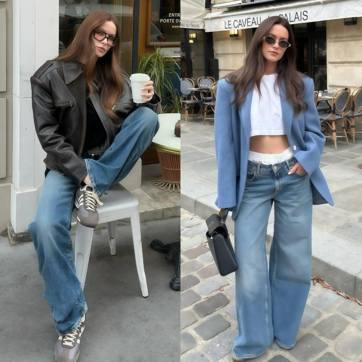 第二节:“阔腿牛仔裤+外衣”配对这两种单品,让你松开变好意思