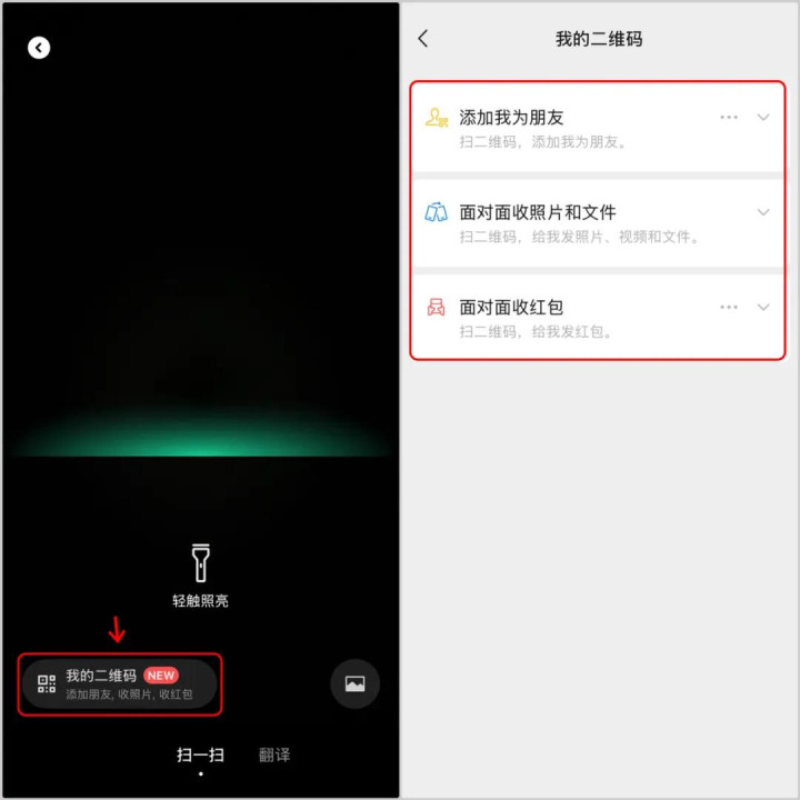 本年春节前,微信升级了扫一扫,在内部加入“我的二维码”,将“添加我为好友”“濒临面收像片和文献”“濒临面收红包”这三个功能全纳入其中。