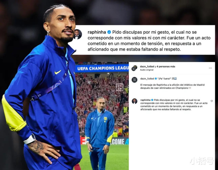 欧冠赛场的硝烟尚未散去,场外的风云却愈演愈烈。本周欧冠1/4决赛次回合赛后,因伤未能出战的巴西边锋拉菲尼亚在场边向庆祝晋级的马竞球迷作念出了极具寻衅意味的手势,激勉弘远争议。千嗨体育获悉,拉菲尼亚次日通过外交媒体公开谈歉。