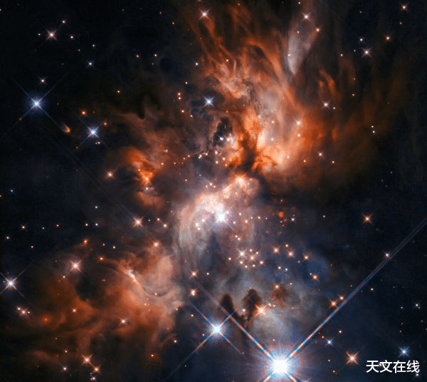 猎户座大星云是最有名的恒星育婴室之一,它距离地球约1350光年,肉眼即可不雅测到其隐隐的光斑。星云中不仅有处于不同造成阶段的恒星——从刚刚开动坍缩的原恒星到还是发光的年青恒星,还存在着由重生恒星喷发出的高速气流(称为赫比格哈罗喷流),这些喷流会冲击周围的气体和尘埃,造成独有的结构。