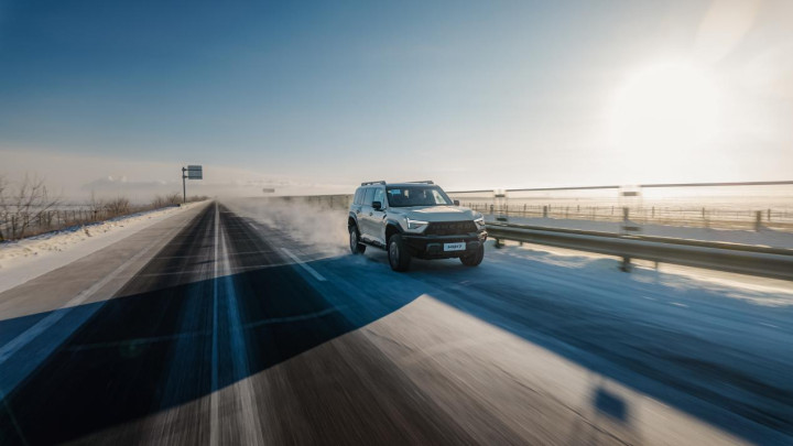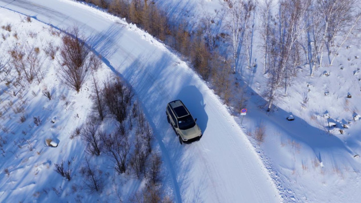 开上猛士M817 Hero版从海拉尔出发,我先经过绥芬河到满洲里的G10高速,这也是中国高速路网18条东西横线中的第1条线。在融雪处理后的高速道路上,以120km/h车速行驶,M817 Hero版并没有给我传统越野车的反馈,在换上雪地胎、胎压2.1bar的情况下,它保持了良好的直线稳定性,转向增益带来了较强的中央区力矩,不会感觉开起来精神紧绷。而且猛士也有不同于合资非承载车型的风格,M817 Hero版在遇上波浪起伏时,没有强烈的“船感”,阻尼浮动行程很克制,尽可能控制住车身垂向运动,而较高的弹簧悬架刚度则让它的俯仰也得到抑制。