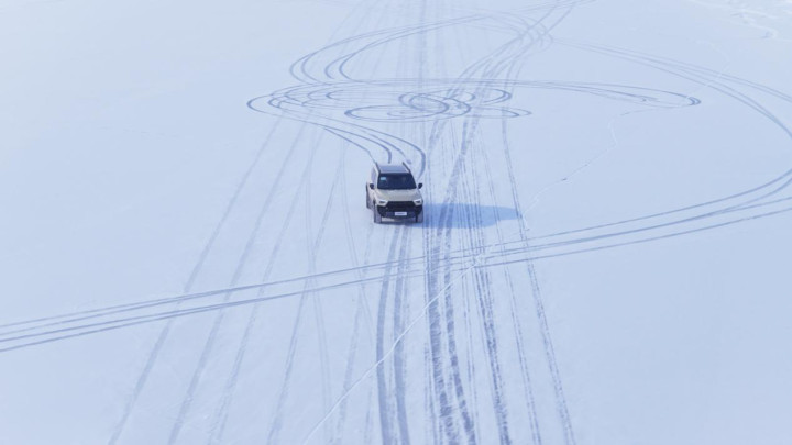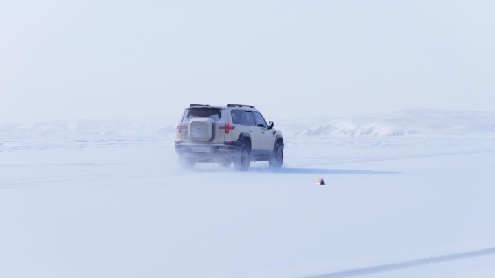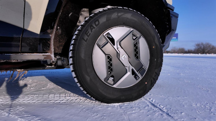 没有装备钉胎的情况下,M817 Hero版在冰面上能做的不多,只要不大角度转向,起码它可以保障稳定的行驶方向。但如果想要玩得开心一些,也可以关掉电子限滑,猛士以前驱为主的输出特性,让它的转向过度更容易控制,只要能把握松踩油门的节点,配合反打方向盘的时机,M817 Hero版就是你学习冰上漂移的好帮手。