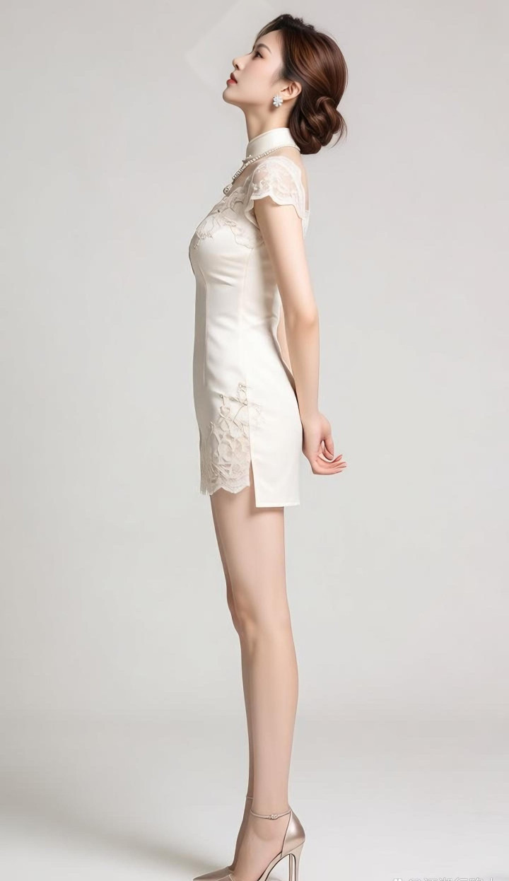 买球投注平台app 穿白色蕾丝衫旗袍裙的好意思女